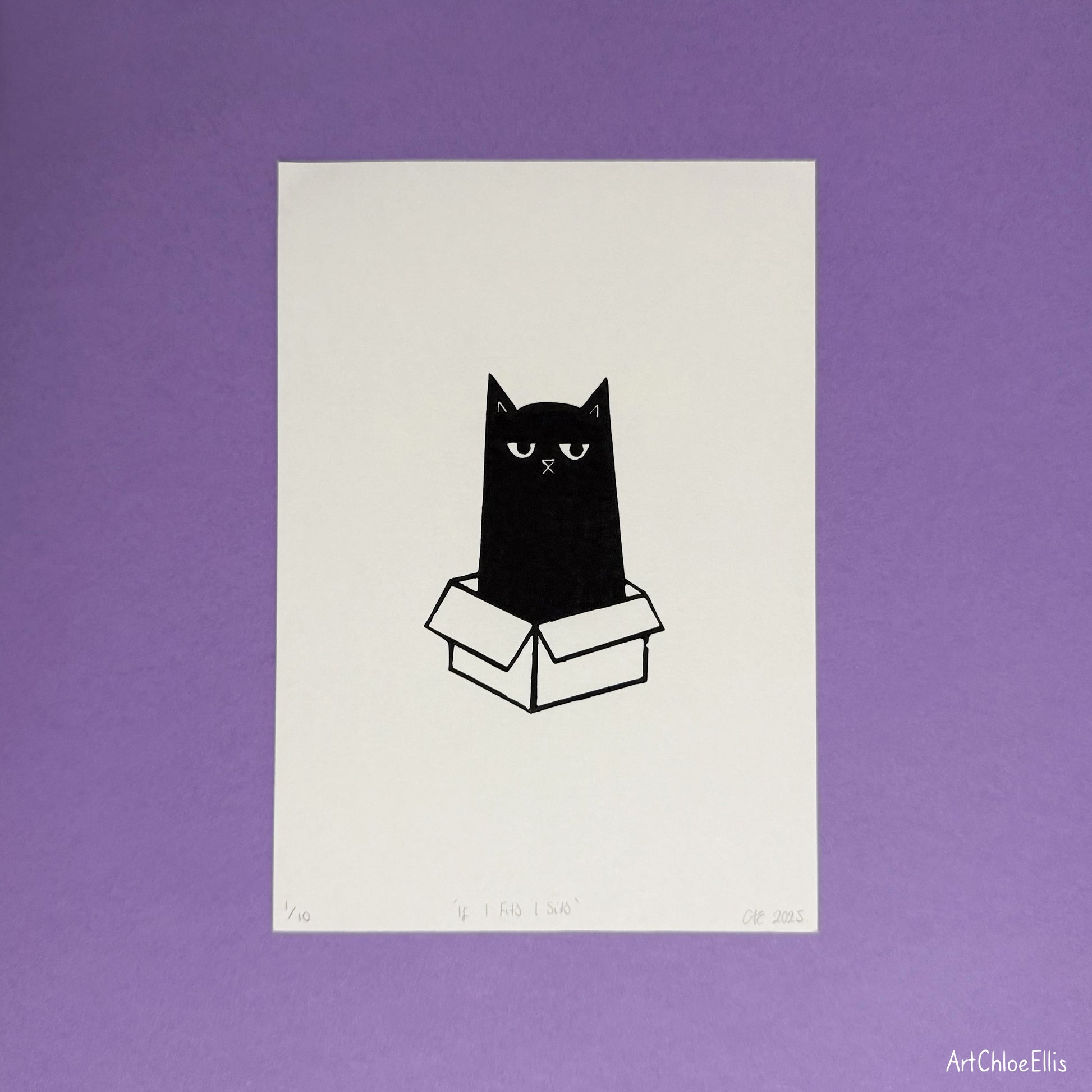If I Fits I Sits – A5 Original Lino-Print